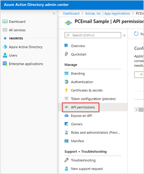- On the Manage section of the menu panel, select API Permissions.