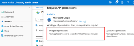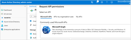 - On the Request API permissions window, click Microsoft Graph.