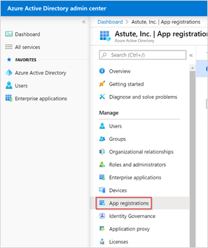 - Under the Manage section of menu panel, select App registrations.