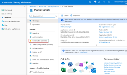 - Under the Manage section of menu panel, click Certificates and Secrets.