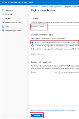 The permissions granted apply to all Microsoft Office 365 mailboxes. You need to restrict permissions to just those mailboxes that the PCEmail service should operate against. This is done through Exchange Online PowerShell. The steps for restricting permissions are described below. For more information, refer to the Microsoft document titled, Scoping application permissions to specific Exchange Online mailboxes.