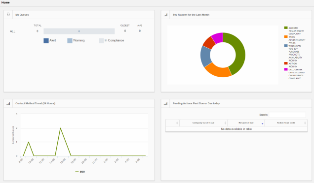 - Case Contact Method: Displays the number of cases received during a specific time period in a chart.